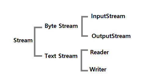 - 바이트 스트림 : 뒤에 Stream 붙음