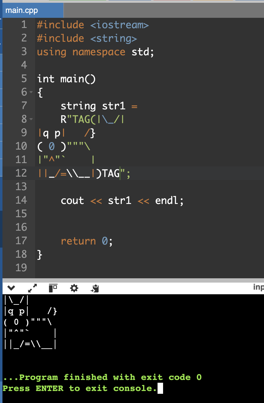 더하여, 다른 블로그를 찾아보니 C++에 새로운 기능인 Raw 문자열이 있다고 한다.